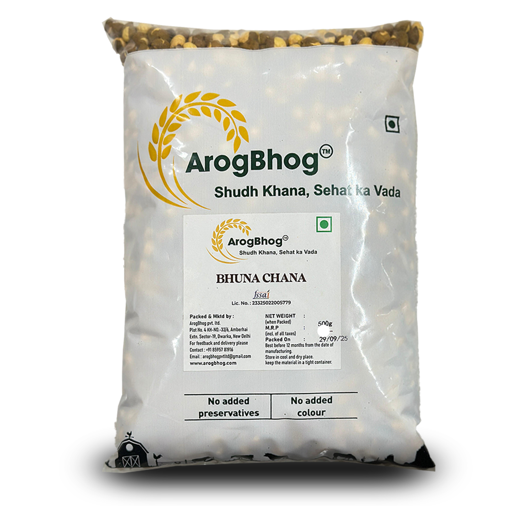 Enjoy the perfect balance of taste and nutrition with Arogbhog Bhuna Chana. These roasted gram seeds are lightly salted and crisped to perfection, offering a protein-rich snack you can enjoy any time of the day. High in dietary fiber and low in fat, Bhuna Chana is a wholesome option for those on a health journey. Sourced from premium quality chana and roasted without added oil, it’s a guilt-free snack loved across generations. Whether with tea or on the go, Arogbhog Bhuna Chana delivers flavor, crunch, and nutrition in every bite.