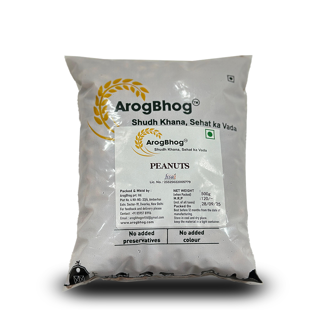 The Fact is: The health benefit of a peanut lies in its Monounsaturated Fatty Acids (MUFA) and high protein content. When peanuts are old or poorly stored, these oils turn rancid, creating a "dusty" or bitter aftertaste. ArogBhog uses a Natural Shell-Drying Process. This protects the nut from moisture and prevents the growth of Aflatoxins (a common mold found in low-quality nuts). Our peanuts are "alive" with flavor, offering a natural sweetness that only comes from fresh, high-oil-content seeds.