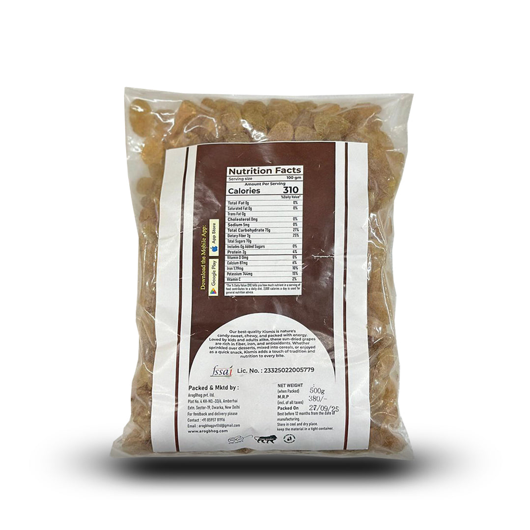 At ArogBhog, we believe that a Raisin should be nothing more than a grape transformed by the sun. If you look at the raisins in a typical store, they are often bright "neon" yellow or have a greasy, oily shine. This is because they are treated with Sulphur Dioxide to preserve color and coated with cheap liquid paraffin oil to prevent sticking. ArogBhog Raisins are 100% Sulphur-Free and Unpolished. They are naturally sun-dried, resulting in a deep, authentic color and a soft, chewy texture that is free from chemicals.